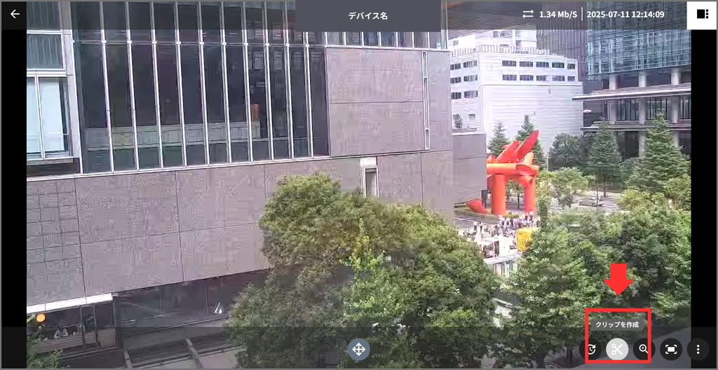 録画映像を保存したい堎合は、画面右䞋に衚瀺されおいる「✂」ボタンをクリックしたす。