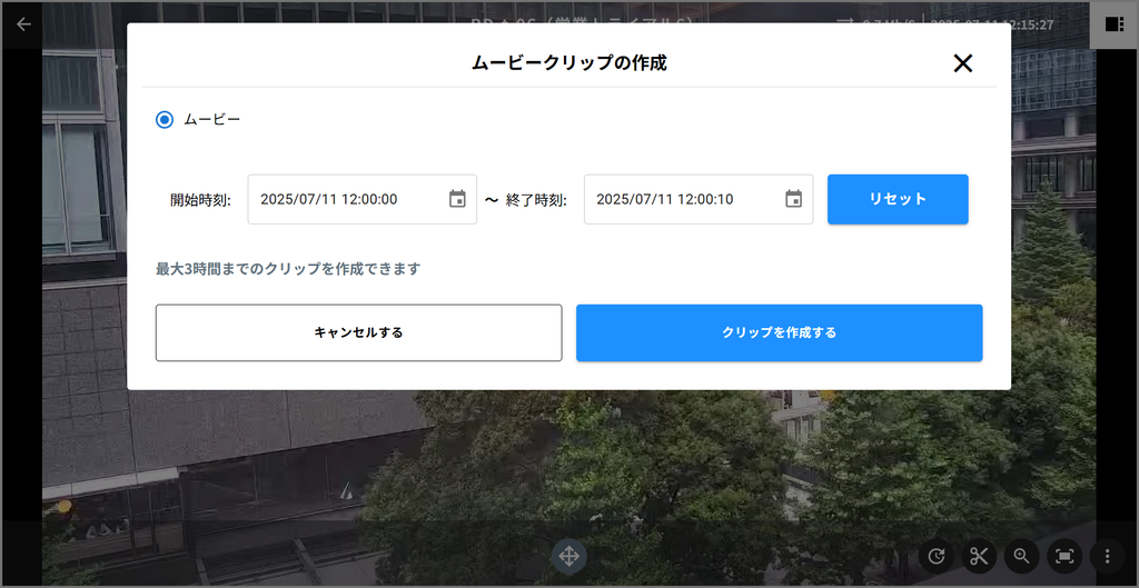 これにより、録画映像のクリップ䜜成メニュヌが衚瀺されたす。