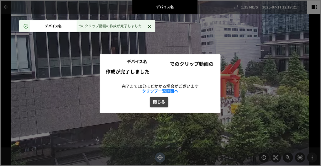 クリップ動画の䜜成が完了するず、画面䞊に完了メッセヌゞが衚瀺されたす。