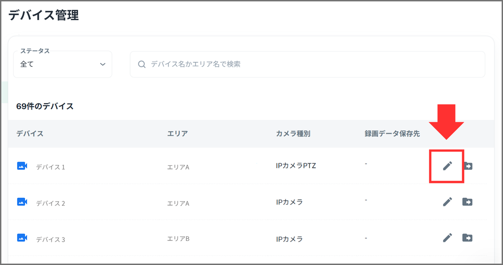 1. デバむス管理画面を開くデバむス管理画面で、察象デバむスの線集ボタンをクリックしたす。