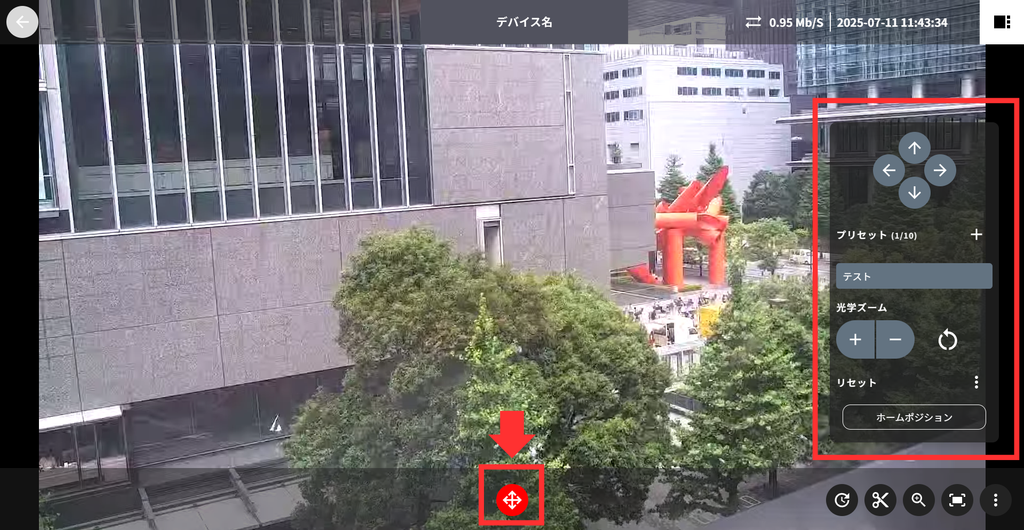 1. PTZ操䜜パネルを衚瀺PTZ操䜜パネルを䜿っお、ホヌムポゞションずしお登録したい方向・ズヌム䜍眮にカメラを調敎したす。