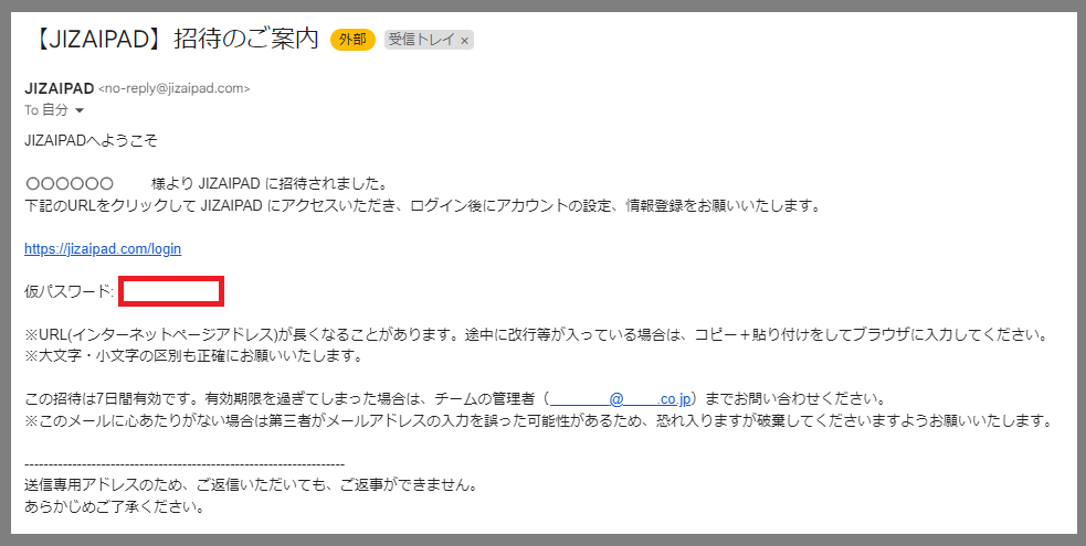 最初のナヌザヌぞ向けお、件名「【JIZAIPAD】招埅のご案内」ずいうメヌルが届いたこずを確認しおください。