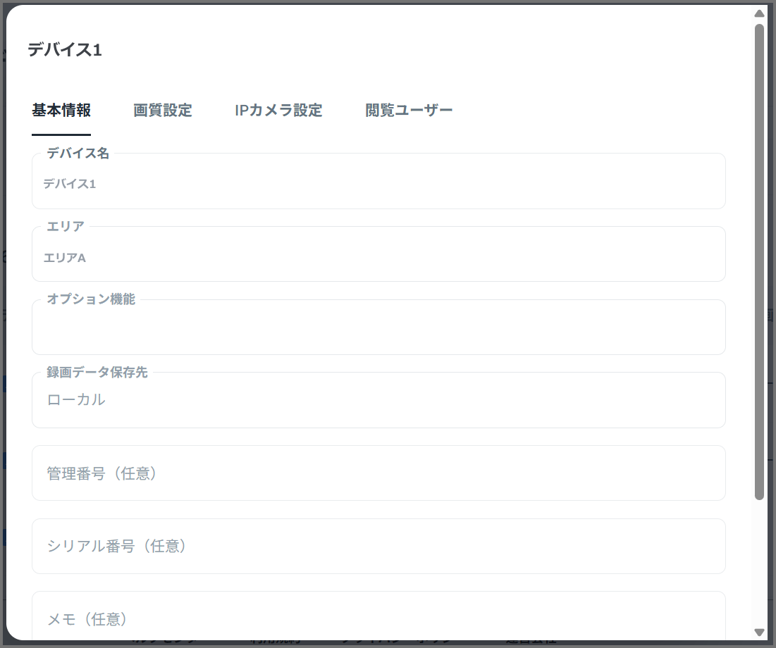 ããã€ã¹ã®å±æ§ãèšçœ®æ å ±ã確èªããç»é¢ã§ãã