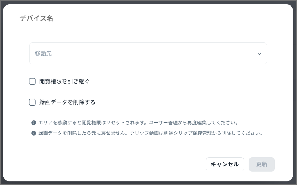 ããâ»ãšãªã¢ã®å€æŽã¯ãšãªã¢ç®¡çç»é¢ããè¡ããŸã