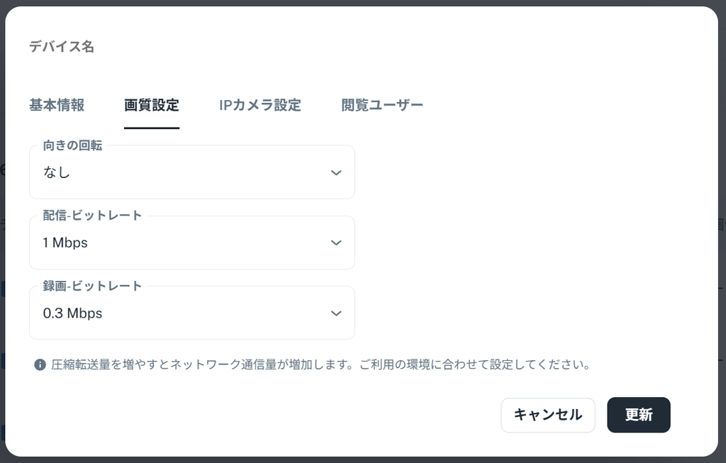 é²ç»ãããã¬ãŒãïŒé²ç»æ åã®éä¿¡éèšå®(æšæºå€ïŒ0.3Mbps)