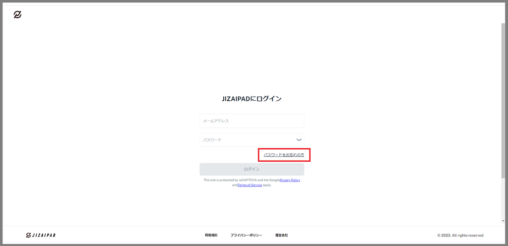 1. ログイン画面、「パスワードをお忘れの方」からパスワード再設定のリクエストを行います