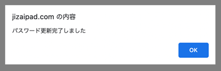 以äžã¡ãã»ãŒãžã衚瀺ãããã°ããã¹ã¯ãŒãã®å€æŽãå®äºãšãªããŸããæ°ãããã¹ã¯ãŒãã§JIZAIPADã«ãã°ã€ã³ã§ããããšã確èªããŠãã ããã