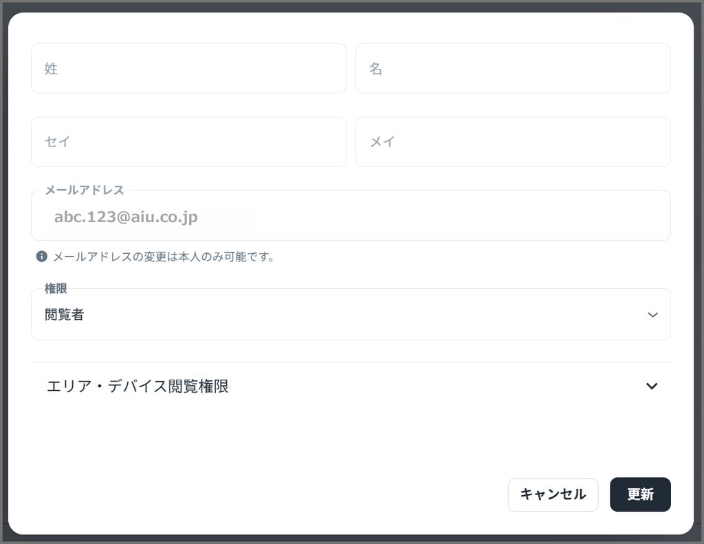 1. ナヌザヌ情報線集画面の「゚リア・デバむス閲芧暩限」で閲芧察象を蚭定したす。