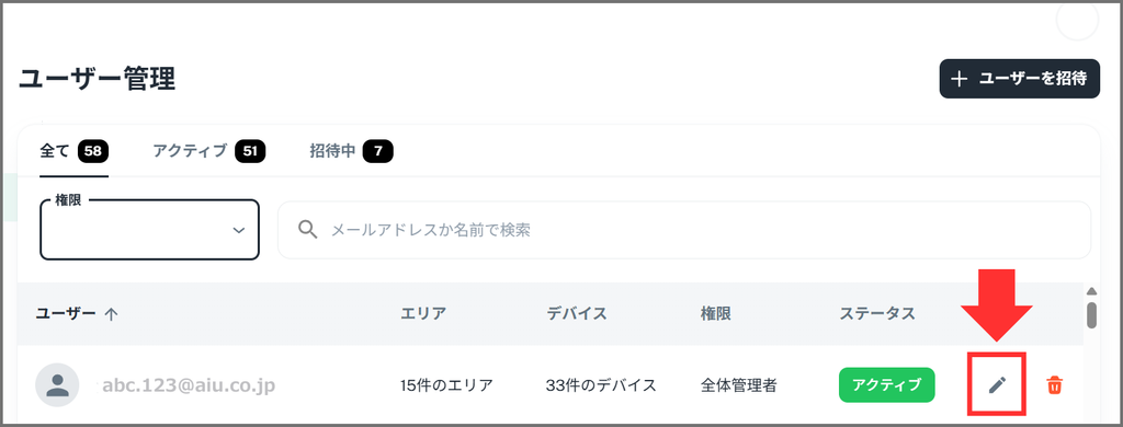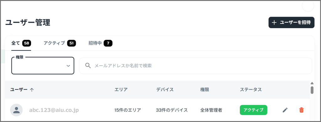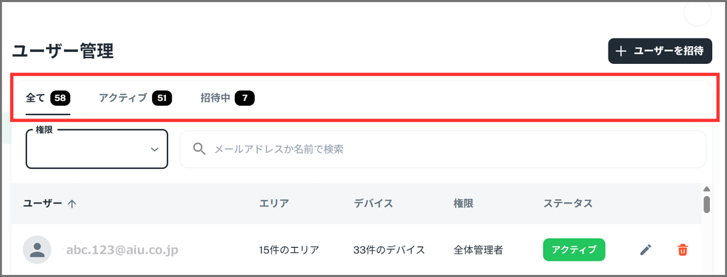 • すべおアクティブ・招埅䞭のすべおのナヌザヌを衚瀺したす。
