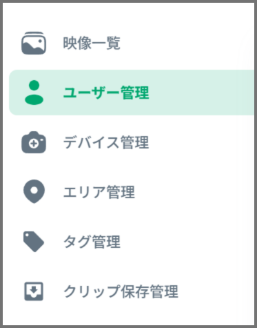 映像䞀芧画面の巊偎のメむンメニュヌ内から「ナヌザヌ管理」をクリックしたす。