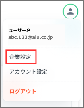 ç»é¢å³äžã®ã¢ã«ãŠã³ãã¡ãã¥ãŒãã¿ã³ãã¯ãªãã¯ããããŠãŒã¶ãŒã¡ãã¥ãŒãâãäŒæ¥èšå®ãããäŒæ¥èšå®ã®ç·šéãã§ããŸãã